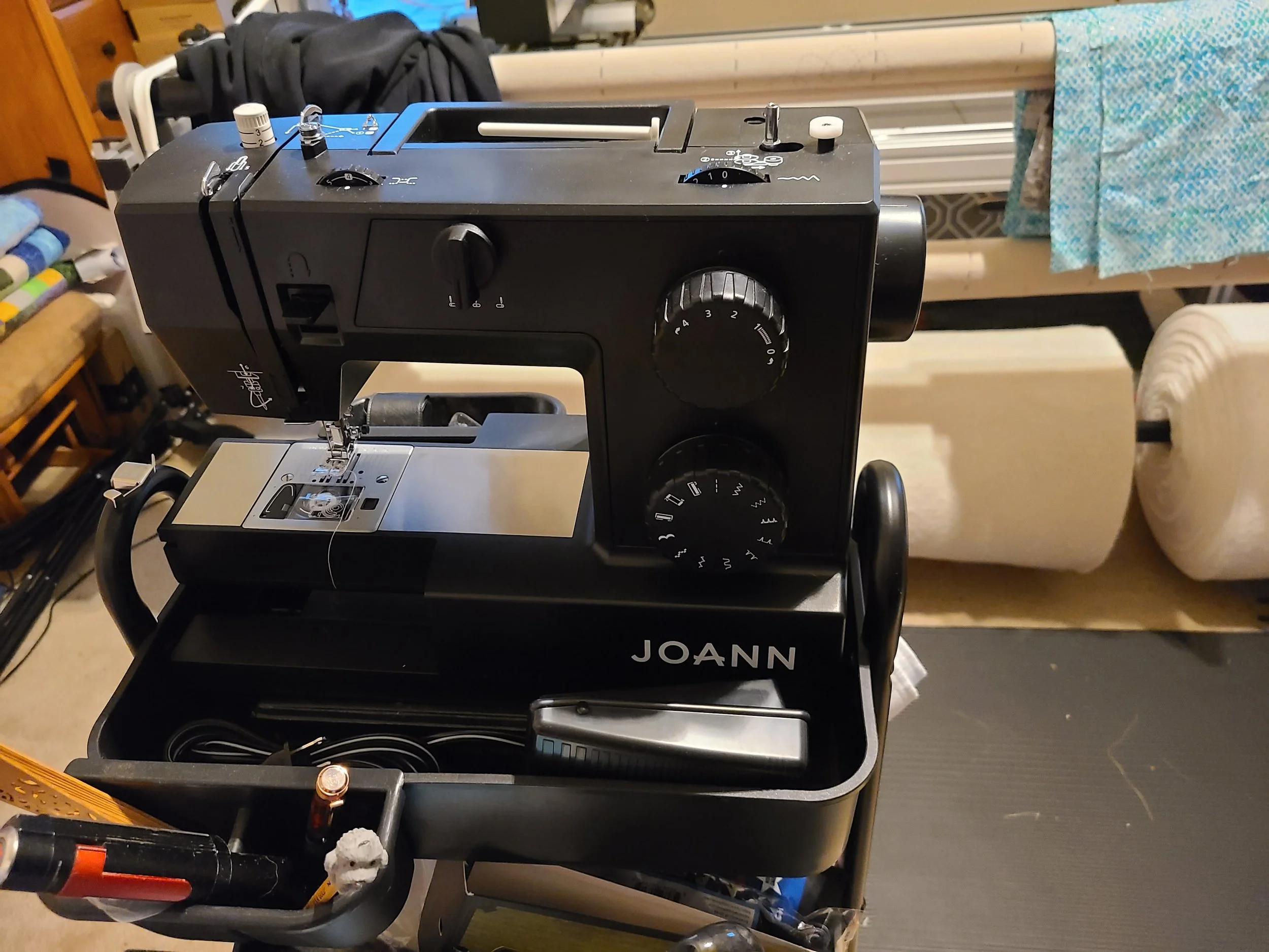 Let me introduce you to Sir Stitch A Lot! He is a Bernina Q24 on a Pro large frame with Q-matic automated quilting. Sir Stitch A Lot has a 24” throat depth that he can quilt in. He also has a maximum of 110” width to handle large quilts. He is also employee of the month! Although he did draw blood on his first day of work.